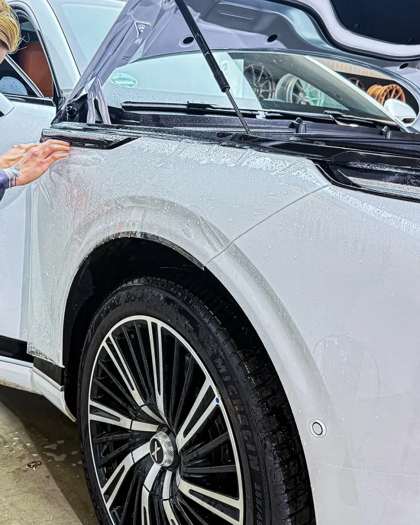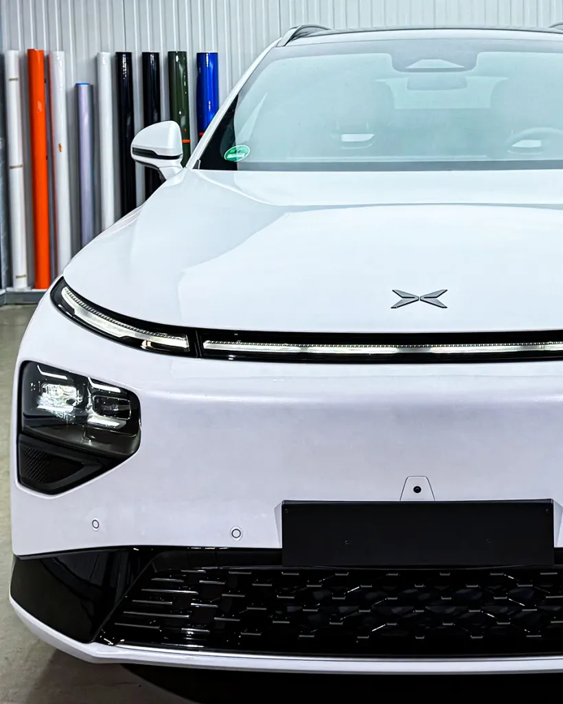 Bei diesem Projekt haben wir den XPeng G9 unseres Kunden gezielt im Frontbereich geschützt. Das Neufahrzeug wurde mit einer hochwertigen transparenten Lackschutzfolie (PPF Front Paket) ausgestattet, die den Originallack unsichtbar schützt und gleichzeitig die Klarheit und den Glanz der Lackoberfläche erhält. Die Folie wurde individuell angepasst und sorgfältig von Hand aufgebracht, sodass jeder Bereich optimal geschützt ist. Besonders bei einem fabrikneuen Fahrzeug gewährleistet diese Methode höchste Präzision und den vollständigen Erhalt des Originalzustands. Der Frontbereich ist dadurch dauerhaft vor Steinschlägen, Kratzern, Insektenresten, Straßenschmutz sowie UV-Strahlung geschützt und trägt maßgeblich zum Werterhalt des Fahrzeugs bei.